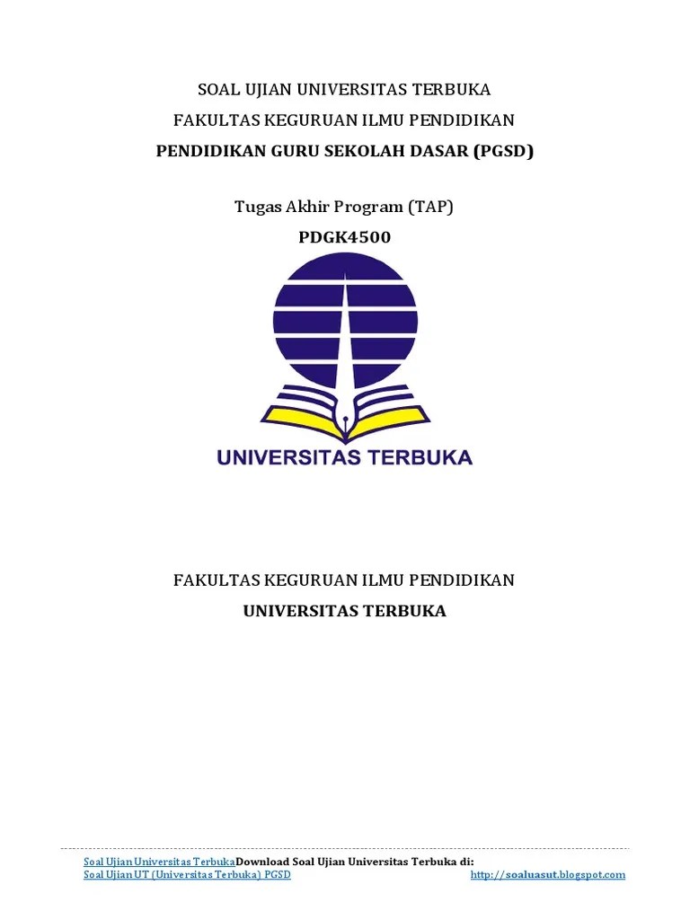 Soal tap s1 pgsd ut. Contoh jawaban soal tap s1 pgsd ut contoh jawaban soal tap s1 pgsd universitas terbuka seperti janji blog penelitian tindakan kelas pada tulisan untuk menyegarkan kembali ingatan anda: Soal tap s1 pgsd ut dapat anda baca di sini. Cek nilai ujian suo ut pendas dan non pendas. The final task program (tap) of paud ut paud is a course that must be taken by students of the terbukan university (ut) in the field of pg paud s1 programs.
